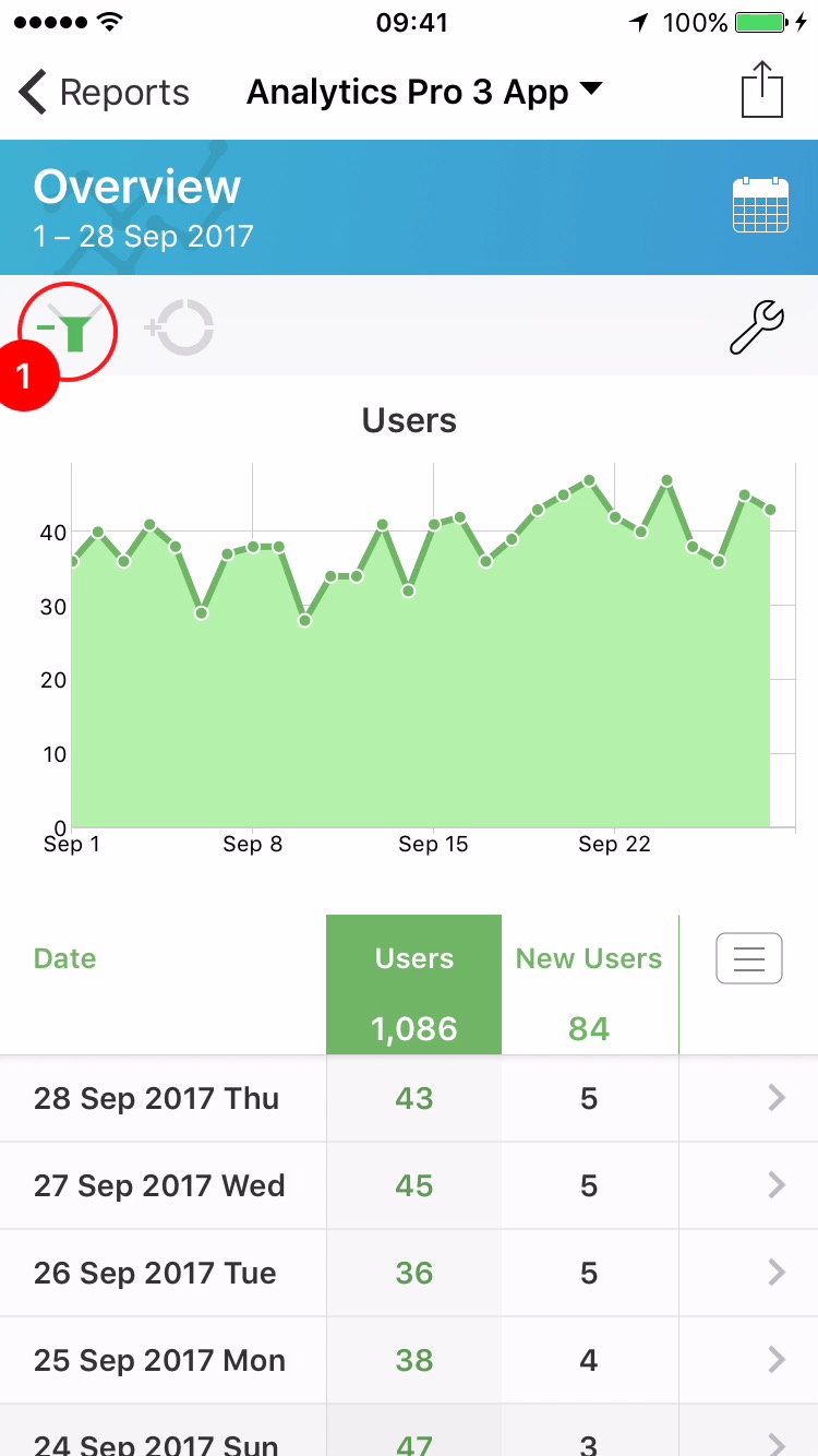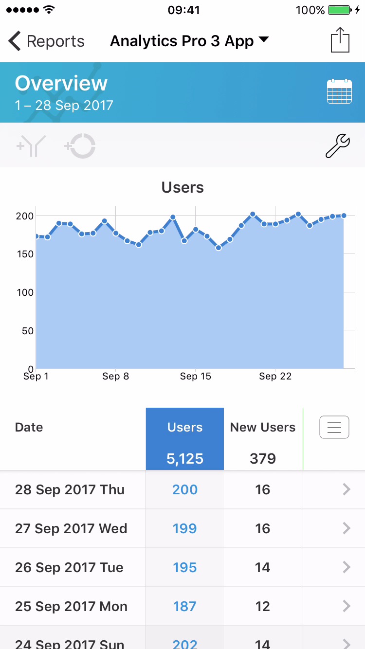 3The report will reload and update after fetching new data. The blue color is applied to the graph and data to indicate that no filters are being applied.