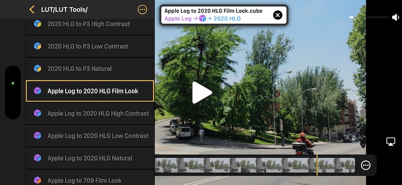 Includes 24 LUTs (4× Universal, 8× Rec.2020 HLG and 12× Apple Log).