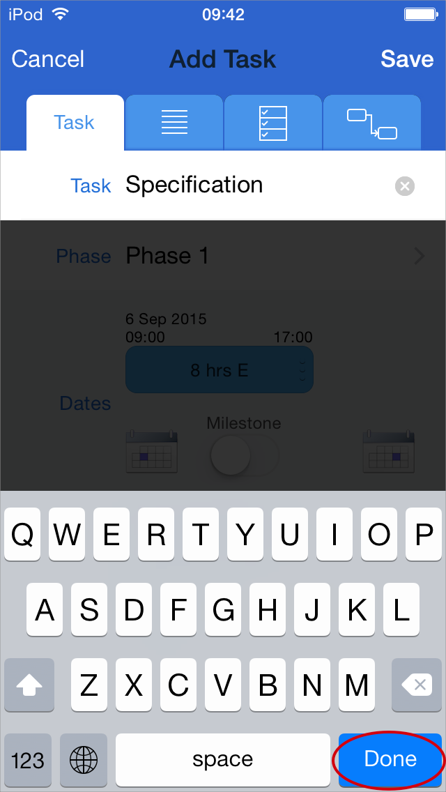 Pro Tip: you can also tap in the darkened region below the task to dismiss the keyboard.