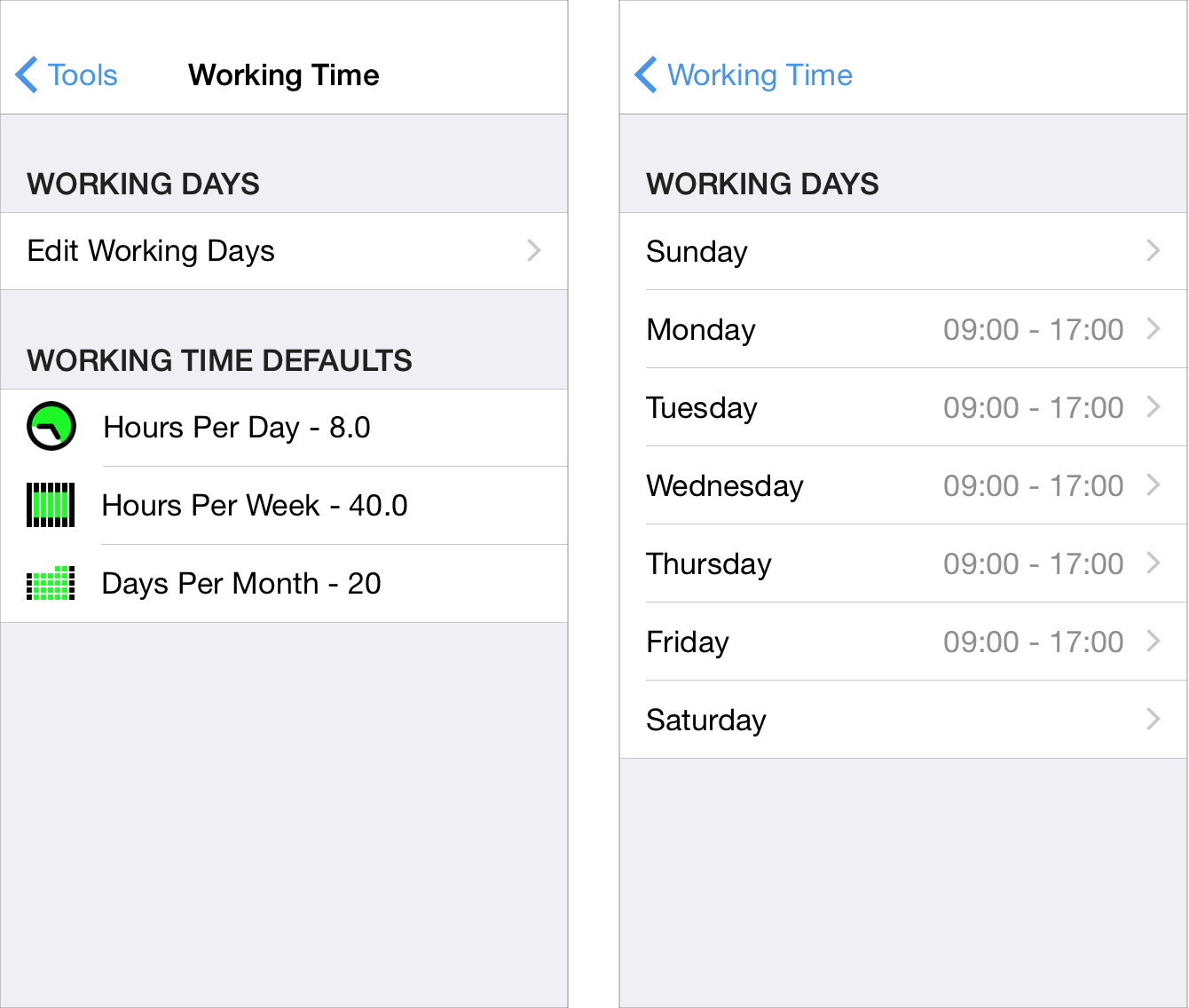 These default settings mean that there are 5 working days with 8 working hours per day.