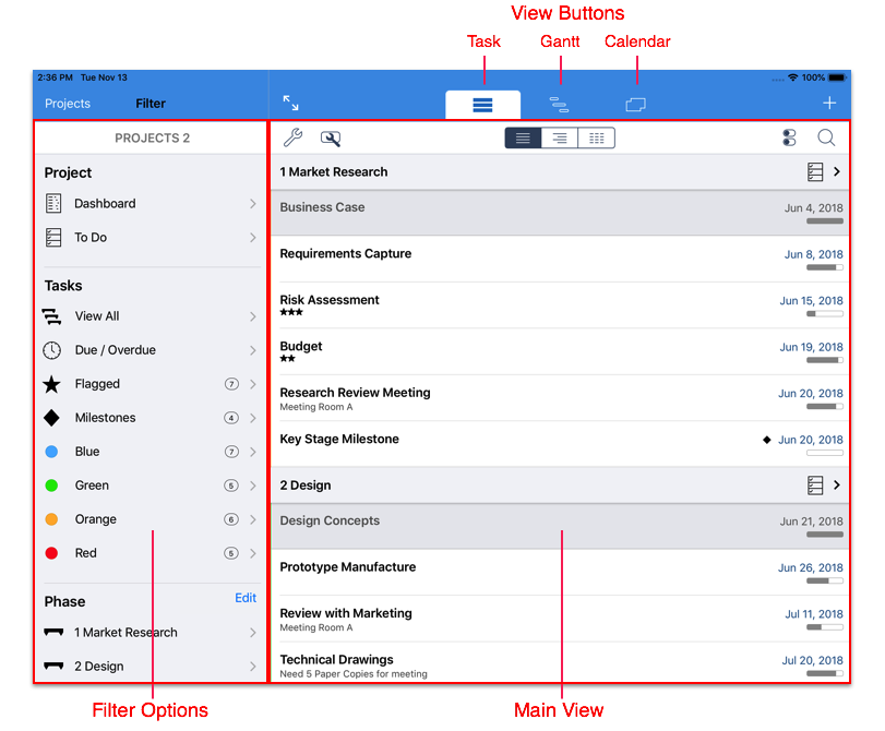 This tutorial introduces the main user interface elements of Projects 2 on iPad.