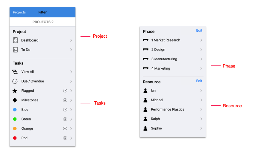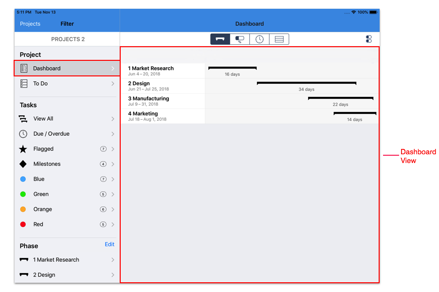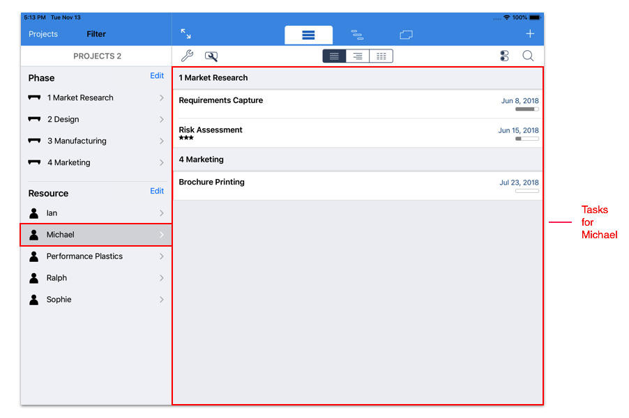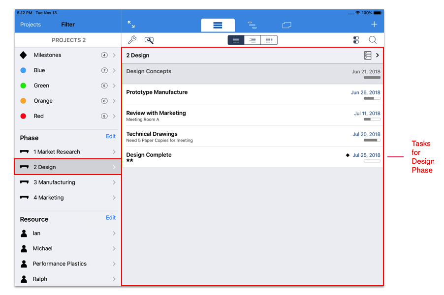 The Phase section allows a project to be filtered so that only tasks in the selected Phase are displayed.