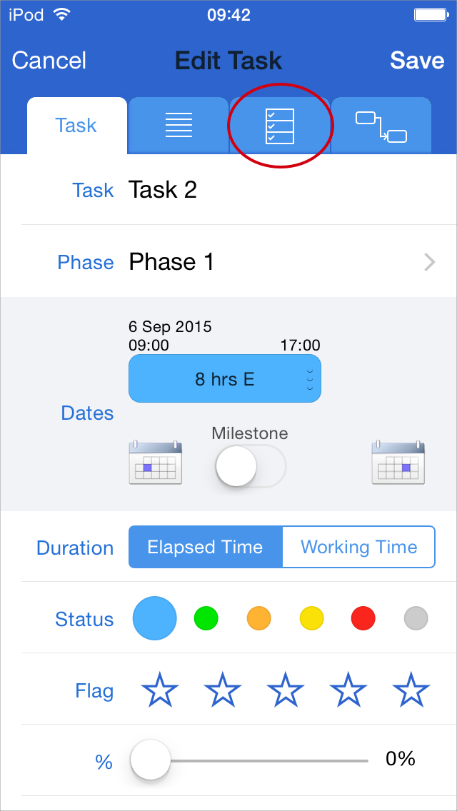 As "To Do" items are marked as complete, the percentage complete for the task will updated automatically.