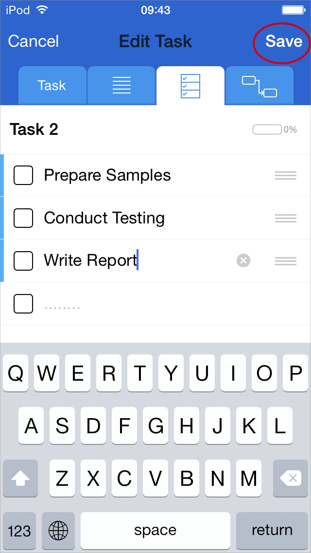 Enter To Do items using the keyboard, and press the Return button on the keyboard to start a new line.