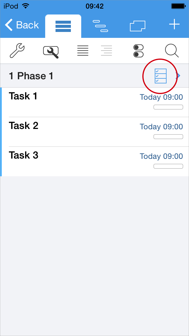 When a Phase contains tasks which have "To Do" items, a button is displayed next to the Phase Title.