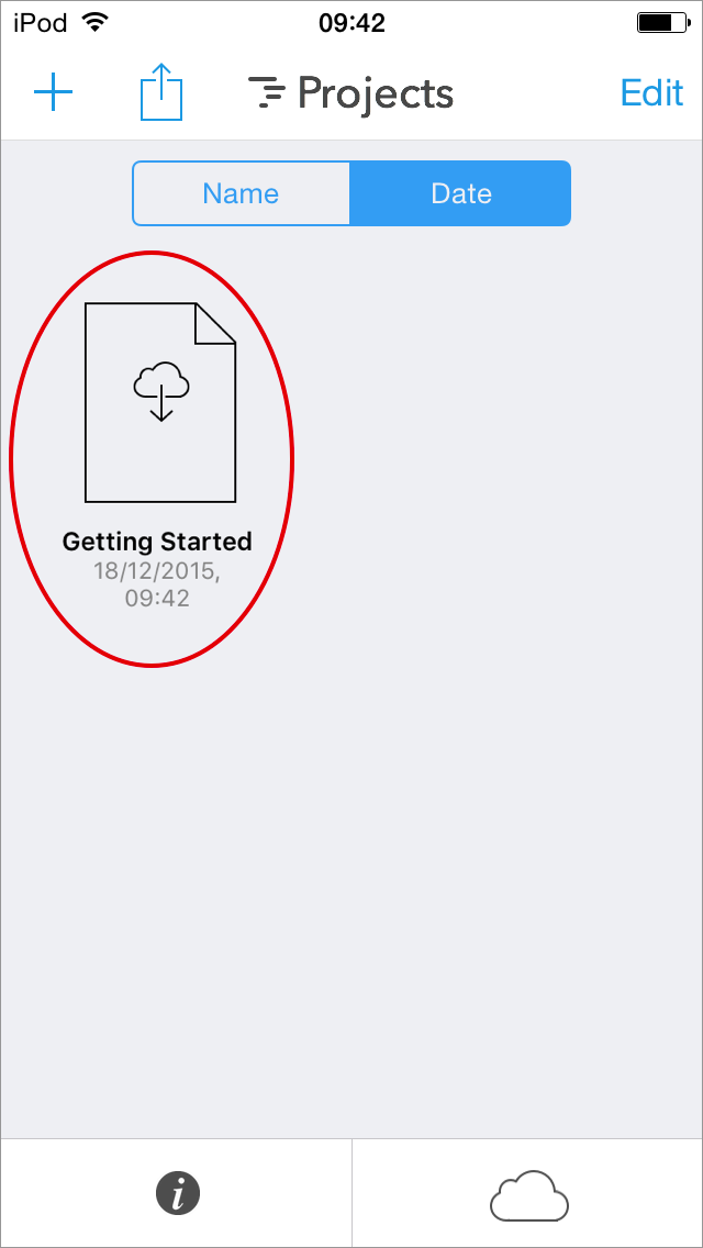 The file outline is displayed (see Figure 4) to indicate that a project file exists on iCloud, but has not yet been downloaded to the device.